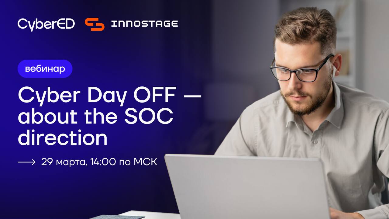 Вы хотите войти в кибербезопасность, но не знаете, с чего начать? Устали от скучных лекций и хотите реальной практики? Добро пожаловать на Cyber Day OFF — событие, которое перевернет ваше представление о SOC-аналитике! CyberED совместно с Innostage проведут серию мастер-классов, которые помогут вам разобраться в профессии, понять, что ждет после трудоустройства, и даже пройти мини-подготовку к техническому собеседованию.
